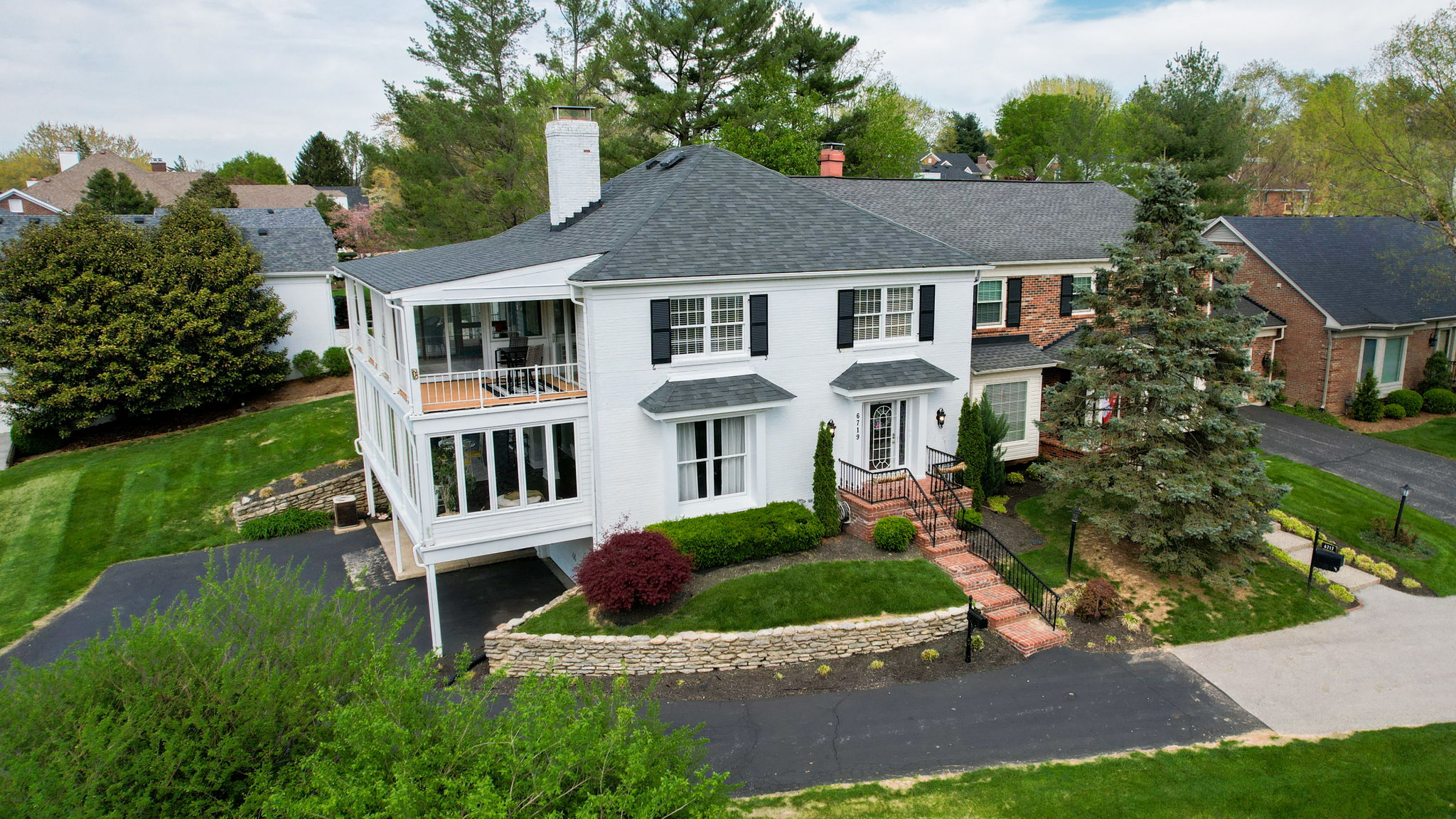- Three-car garage in the basement with new garage doors and openers, plus covered carport parking for up to nine vehicles